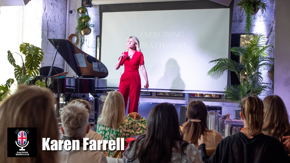 Call +44 1753 439 289 or email Great British Speakers today to book breathwork specialist Karen Farrell for your corporate event.Â